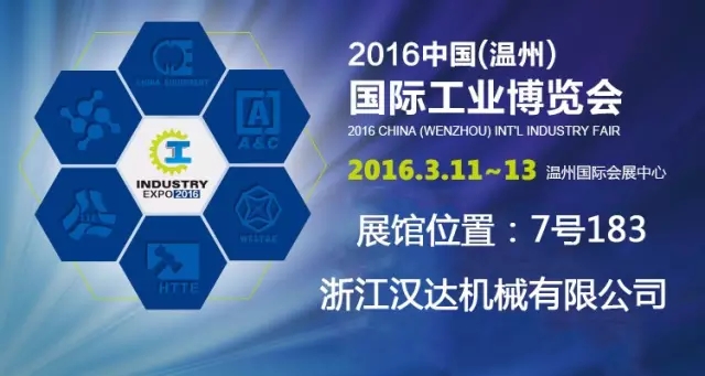 2016月3月11日至13日,浙江漢達參加2016中國(溫州)國際工業博覽會,屆時將展出油缸和液壓閥。