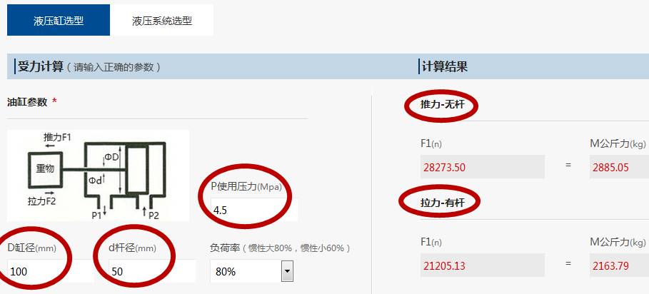 (P:壓強(qiáng); S:受壓面積—由油缸的缸徑、桿徑?jīng)Q定)