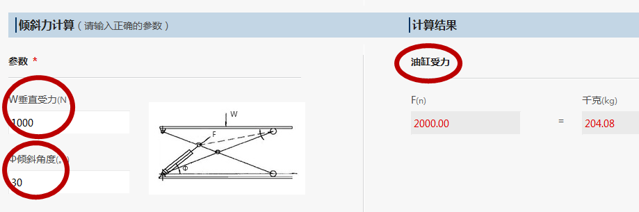 油缸與地面呈30度安裝情況下,要選多大缸徑的油缸?